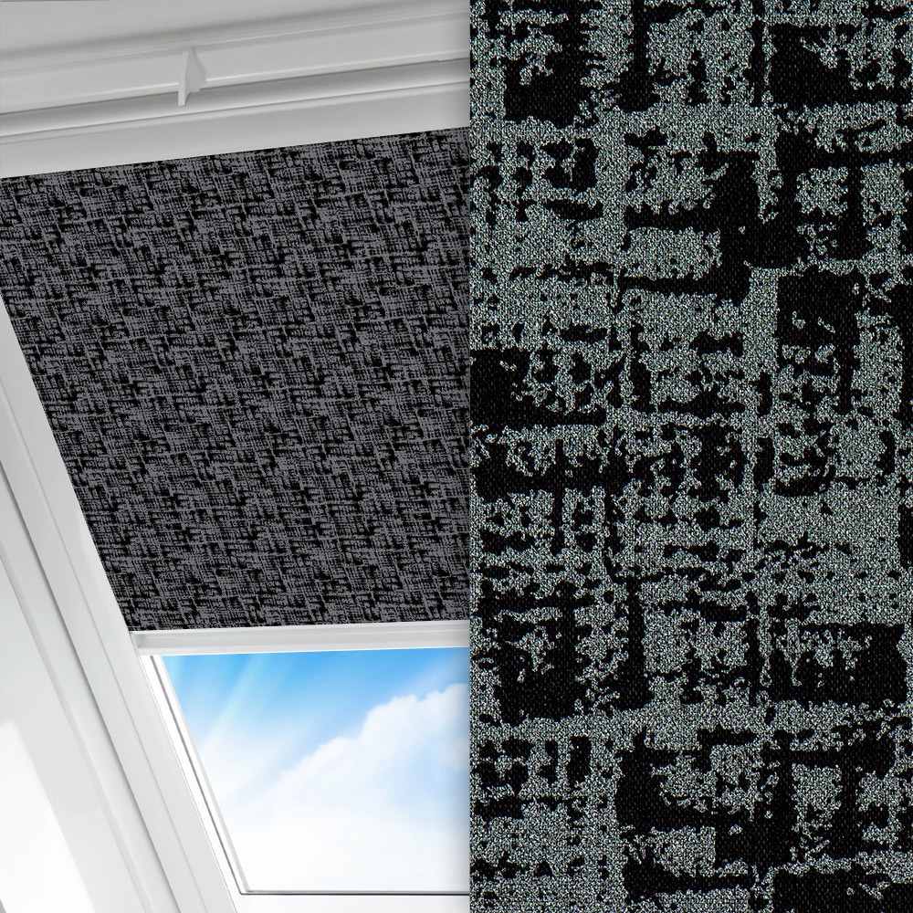 Dachfenster Rollo Fantasia, grau/schwarz, komplett verdunkelnd, Rückseite farbig wie Vorderseite, abbürstbar