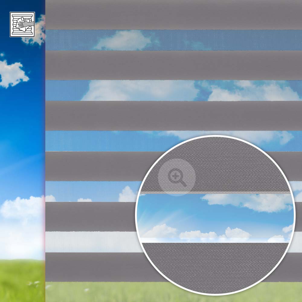 Schöne und funktionale Doppelrollo Anlage des Marktführers Duoflor. Lassen Sie viel Licht herein, aber Blicke effektiv draussen. Die Streifen dieses Doppelrollos sind abwechselnd grau (Höhe: 7,5 cm) und transparent (Höhe: 5 cm).