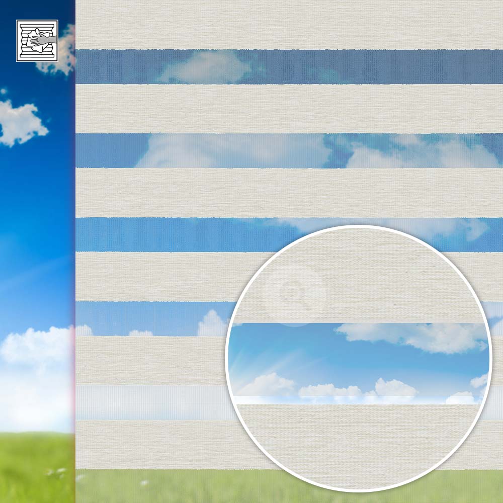 Schöne und funktionale Doppelrollo Anlage des Marktführers Duoflor. Lassen Sie viel Licht herein, aber Blicke effektiv draussen. Die Streifen dieses Doppelrollos sind abwechselnd weiss (Höhe: 7,5 cm) und transparent (Höhe: 5 cm).