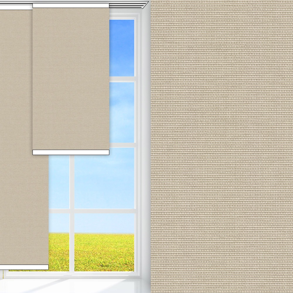 Grundprofil aus hochwertigem Kunststoff. Stranggepresstes Design-Profil aus Aluminium zur einfachen und geraden Montage der Stoffpaneele. Roller mit sehr guten Laufeigenschaften. T- Und L- Mitnehmer zum Verbinden der Paneele untereinander (auf Anfrage).
