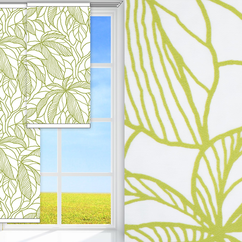 Schöner Stoff in der Farbe Weiss/Grün. Blickdicht, aber lichtdurchlässig. Einfache Pflege: Dieser Stoff ist feucht abwischbar. Maximale Breite des Stoffes pro Anlage: 240 cm. Für Übergrößen werden Stoffbahnen zusammengenäht, falls erforderlich. Mit Muster. Stilrichtung: Natur.