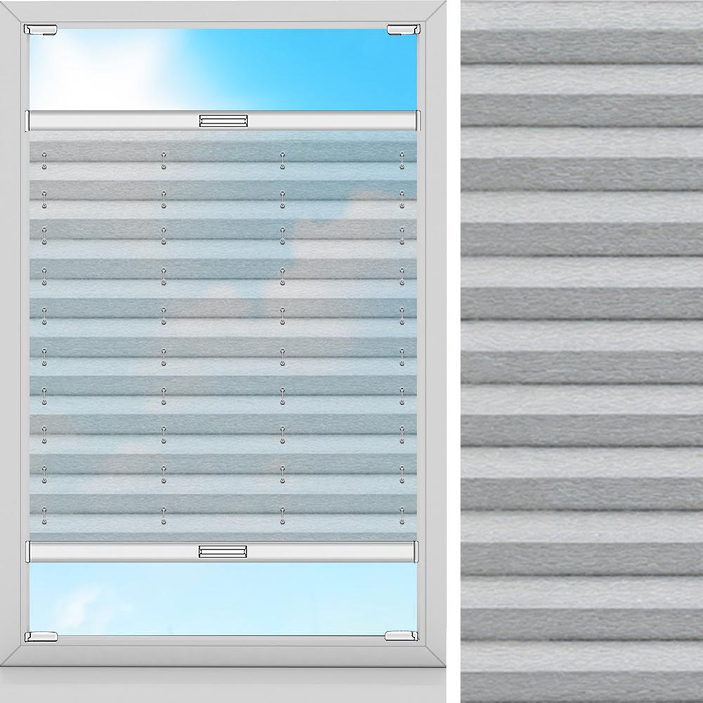 Hochwertige, graue Plissee. Reiner Deko-Stoff, um Ihr Zuhause zu verschönern. Lässt Blicke und Sonnenstrahlen fast ungefiltert durch. Maximale Breite des Stoffes: 230 cm.