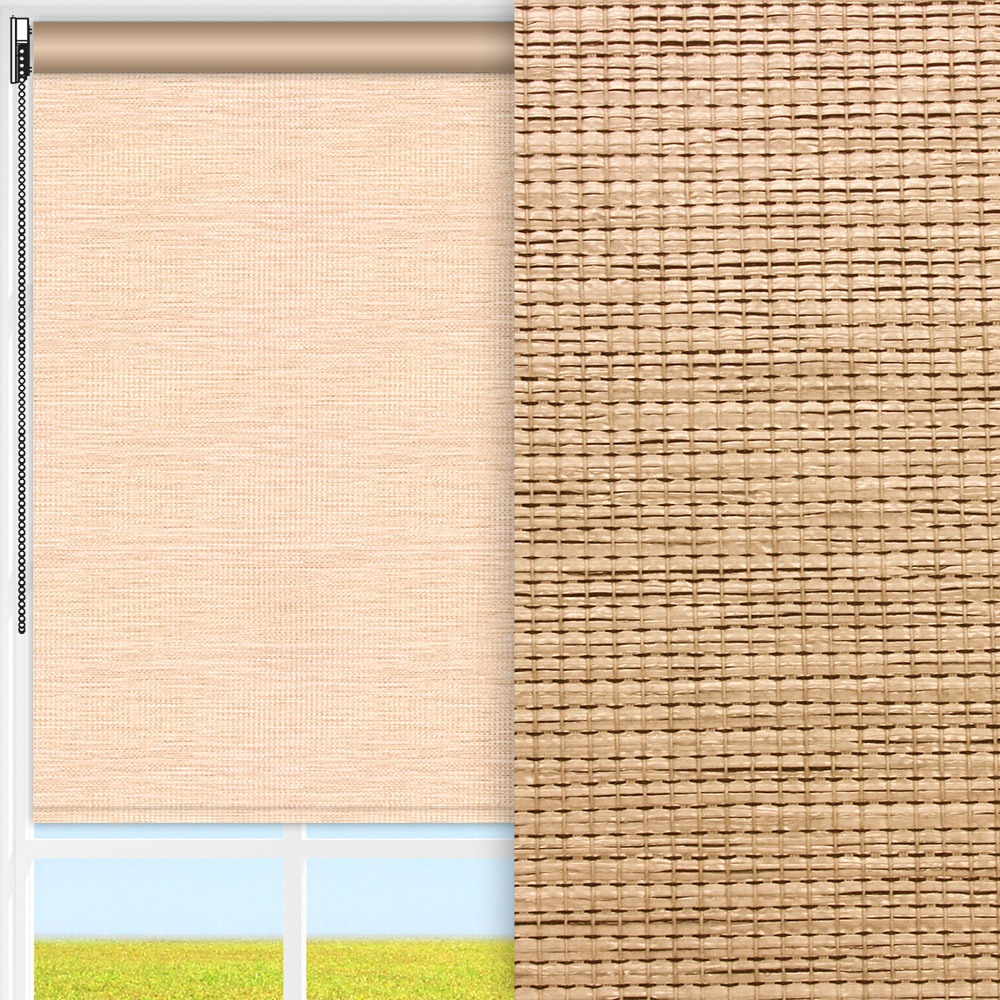 Stark verdunkelnd. Ideal für Räume wie Schlafzimmer. Schöner Stoff in der Farbe Beige. Maximale Breite des Stoffes pro Anlage: 240 cm. Für Übergrößen werden Stoffbahnen zusammengenäht, falls erforderlich.