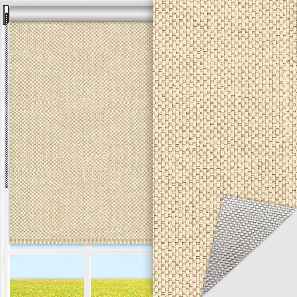 Schöner Stoff in der Farbe Beige. Blickdicht, aber lichtdurchlässig. Einfache Pflege: Dieser Stoff ist feucht abwischbar. Besonders energieeffizient: Durch die besonderen Eigenschaften wirkt der Stoff temperaturdämmend. Im Winter bleibt bei effektiver Nutzung mehr Wärme im Raum. Im Sommer können aufheizende UV-Strahlen ausgesperrt werden. Brandschutz: Dieser Stoff ist schwer entflammbar. Temperaturdämmung und pflegeleicht zugleich. Die Rückseite dieses Stoffes ist mit Aluminium beschichtet. Maximale Breite des Stoffes pro Anlage: 240 cm. Für Übergrößen werden Stoffbahnen zusammengenäht, falls erforderlich.